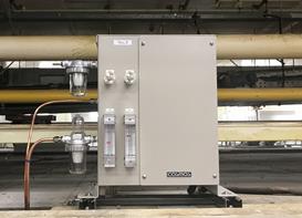 製パン・製菓といった食品業界で用いられるトンネルオーブンは、可燃性ガスを用いてバーナーで燃焼しているため、万一のガス漏れを検知するために吸引式のガス警報器を設置し、オーブン内のガス濃度を常時監視しています。しかし、オーブン内は高温高湿度環境であるため、ガス吸引の配管途中で温度が下がり、結露が発生する場合があります。そこで、一般的なオーブン内のガス検知では通常、吸引時の高温高湿ガスをオートドレンまでのサンプリング配管内で結露させ、排水用のオートドレンでドレン(結露)排出する仕組みを取っています。しかし、オーブン内とオートドレンとの温度差が足りず、オートドレンを超えてサンプリング配管内で結露したドレンがセンサ部に浸入してしまった場合、センサ故障の原因となります。さらに、このドレンは配管などの腐食の原因にもなります。また、オートドレンは水封式であるため、この水封の管理を怠ると水封機能を保てなくなり外気が混入してしまいます。このため規定のオーブン内ガス濃度で警報しないなどの危険がありました。