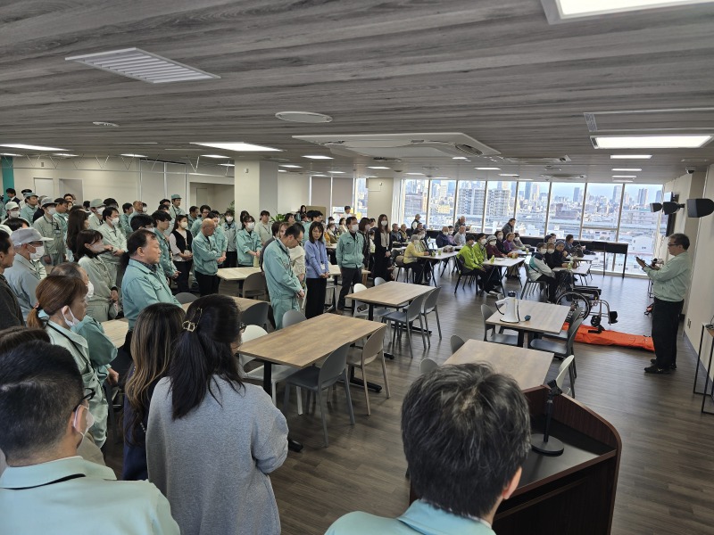 大阪府に大規模な地震が発生し、津波警報が発報されたと想定した訓練で、淀川区役所職員や町内会長、福祉施設関係、地域住民など58名と当社従業員122名、合計180名が参加しました。
